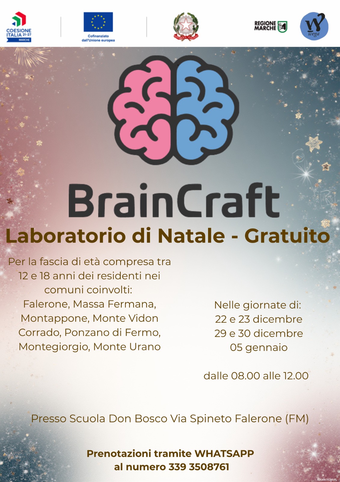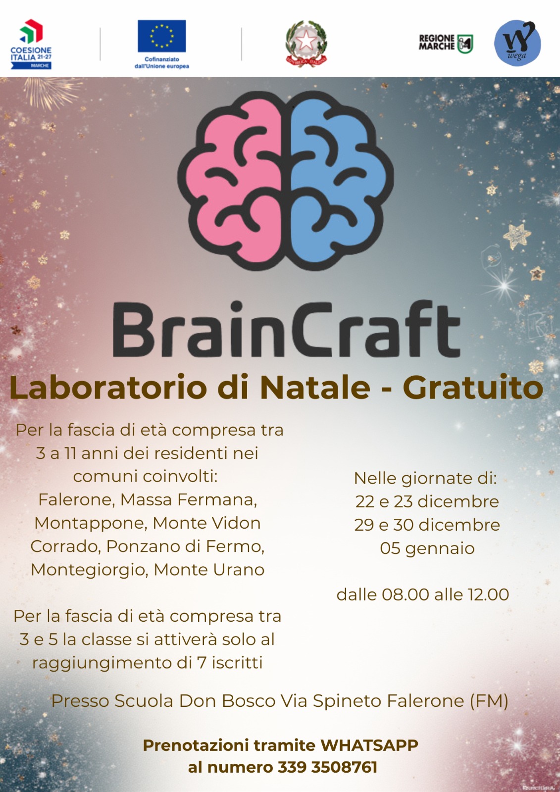 Si invita la Cittadinanza a prendere visione delle locandine in allegate inerente - Brain Craft - Laboratorio di Natale gratuito