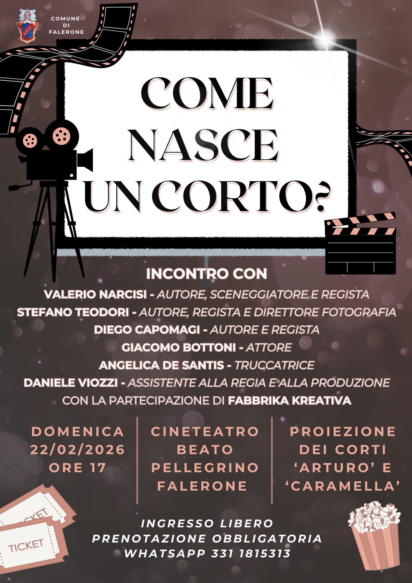Si invita la Cittadinanza a prendere visione della locandina in allegato inerente l'evento: "Come nasce un corto?" - Teatro Beato Pellegrino - 22.02.2026