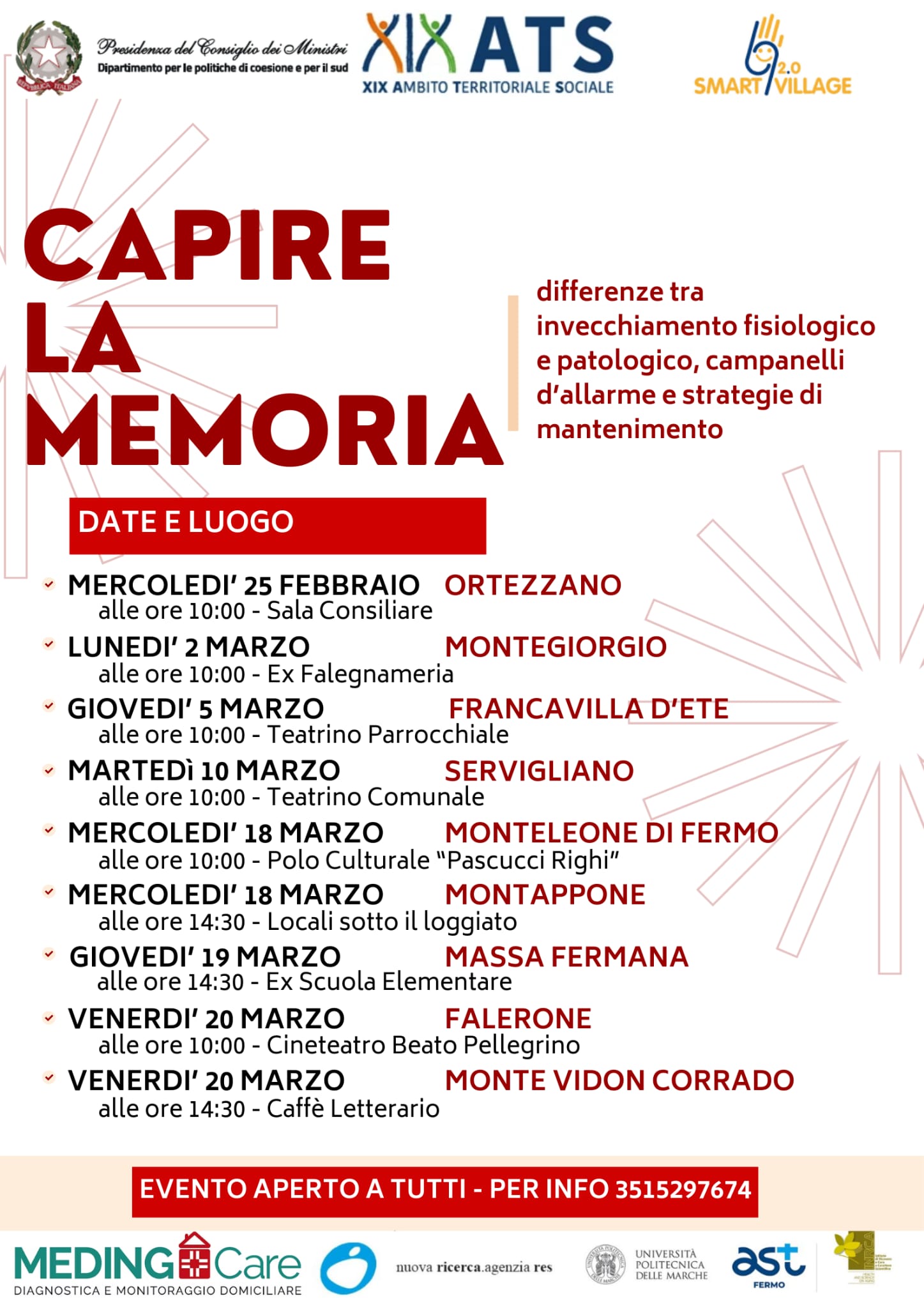 Si invita la Cittadinanza a prendere visione della locandina in allegato inerente l'iniziativa dello Smart Village 2.0: Capire la memoria