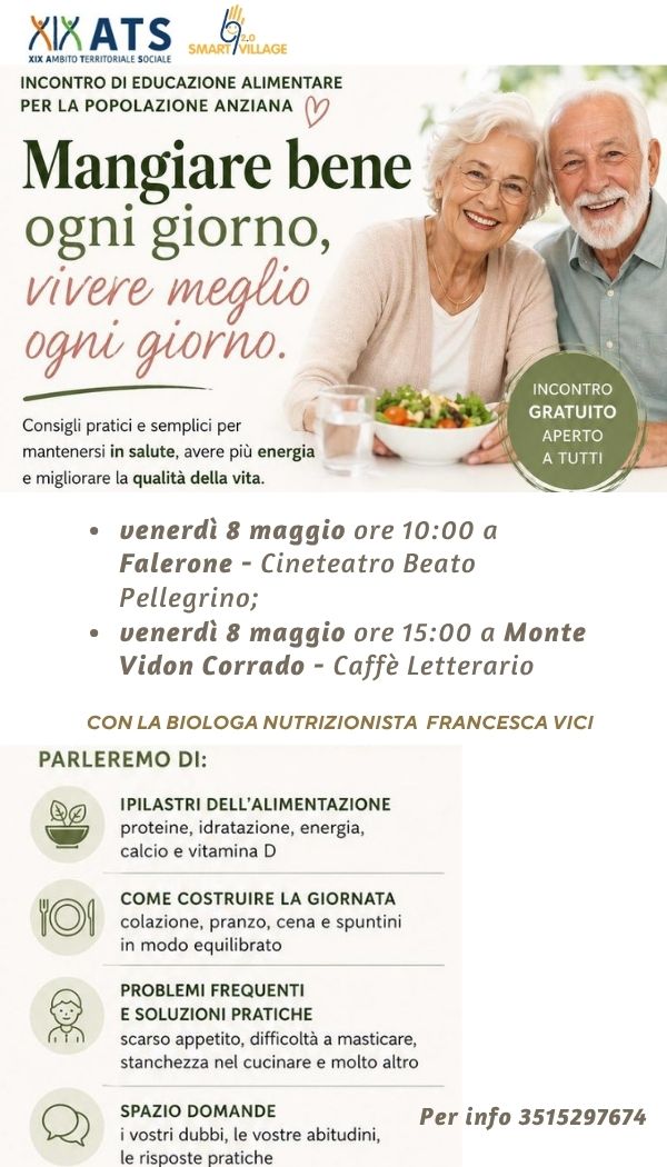 Si invita la Cittadinanza a prendere visione della locandina in allegato circa l'iniziativa a cura di Smart Village 2.0: Evento - "Mangiare bene ogni giorno, vivere meglio ogni giorno"