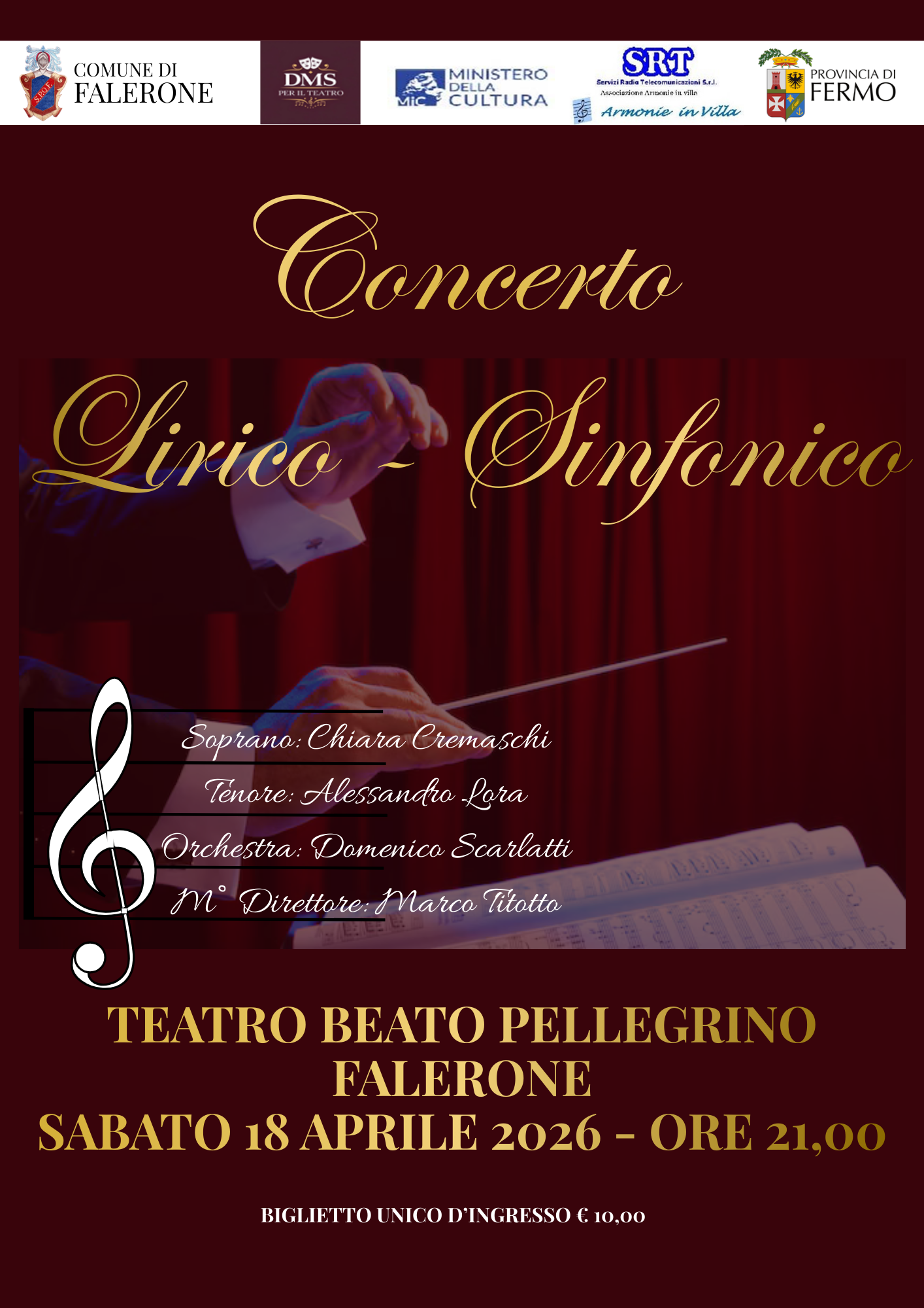 Si invita la Cittadinanza a prendere visione della locandina in allegato circa l'evento: "Concerto Lirico-Sinfonico" - 18 aprile 2026 ore 21:00